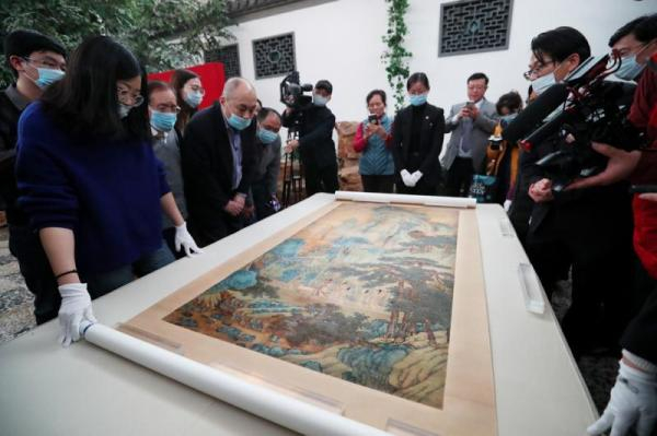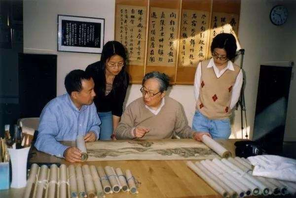 艺术史系学者白谦慎与学生在翁万戈家里观摩《长江万里图》