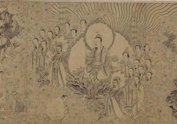 2010年,将明代画家吴彬《勺园祓禊图》捐赠给了北大。“勺园”就是北大,北大现在还叫“勺园”。当年这幅图在北京中华世纪坛展出时,北大图书馆一位姓沈的先生看展览的时候看到这幅画,他就提议北大能不能收藏这幅画。这个信息后来就透露给了万戈,万戈其实早都想到这个事情,万戈知道北大叫“勺园”,“勺园”在北大。而且北大有一个赛克勒考古与艺术博物馆,万戈去北大去了不知多少回了。而且非常让我感动的是,2010年捐画的时候,万戈在北大的老朋友侯仁之那时候已经快100岁了,住在医院里,知道万戈来了,由他女儿推着轮椅、戴着口罩从医院里出来。这边是万戈的女儿翁以思推着轮椅,我一看真是两个老人,两张轮椅在北大图书馆见的面。侯仁之对这幅画也很清楚,他的恩师,著名的历史学家洪业先生曾为燕京大学图书馆购得勺园主人米万钟所绘《勺园修禊图》,现存北大图书馆。侯仁之院士也著有《燕园史话》《记米万钟〈勺园修禊图〉》和《复制米万钟〈勺园修禊图〉略记》等。他知道《勺园祓禊图》今天到了北大了,高兴得不得了,这是捐《勺园祓禊图》的事情。