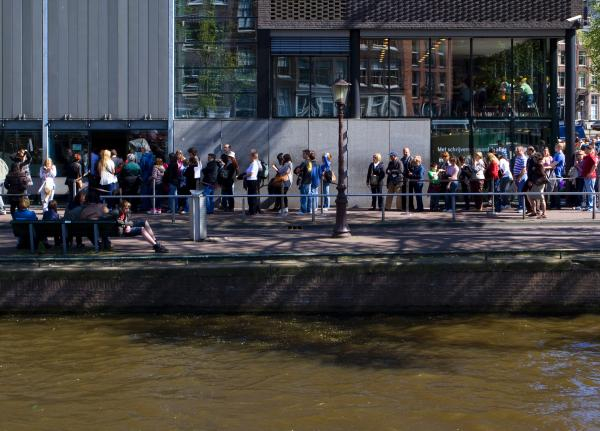 人们在排队进入阿姆斯特丹的安妮·法兰克博物馆