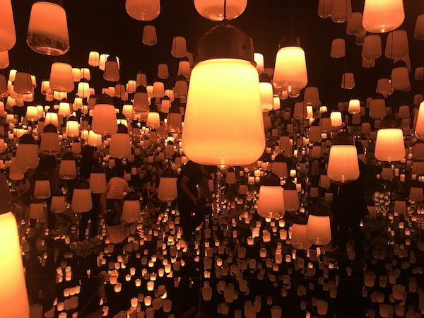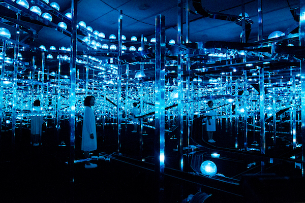 这一次在上海会有几个和东京不同的作品。比如《灯之森林》的面积比东京的要大1.5倍,“无止境”的感觉更加强烈。有一个用光束灯打造的作品,我们对光束灯进行了改良,控制它的温度,提高作品的安全性。此外,还有一个名为《光群落》的作品:在一个空间里,有几百个会移动的光球,如果前面有光球的话,它们会减速,反之会加速移动。