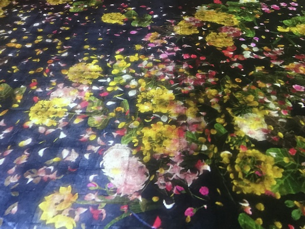 首先,由于作品会移动变换,一次到场馆不可能将所有的作品全部看完。其次,我们的作品以自然为主题,比如花朵、生物等等,它们会根据季节进行变化。以东京的展馆为例,每个季节的作品都不同,一年中也增加了许多作品,它们没有固定的位置,拥有丰富的内容。此外,我们认为这些展览上的元素,比如花朵、蝴蝶等等本身并不是重点,我们更想要表现它们的变化。