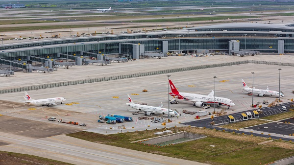 图说:浦东国际机场卫星厅北港湾停机坪 来源/上海机场供图