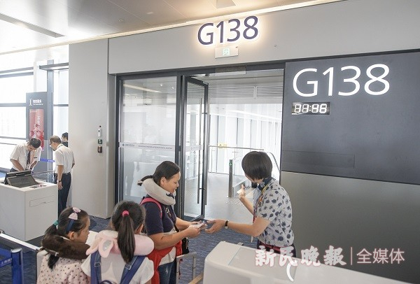 图说:卫星厅首班航班今天中午登机 新民晚报记者 陈梦泽 摄(下同)