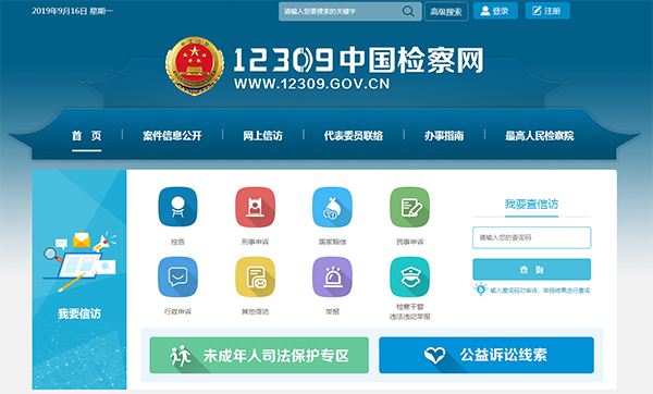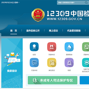 9月16日,全国检察机关办事服务综合门户12309中国检察网(https://www.12309.gov.cn/)正式上线。