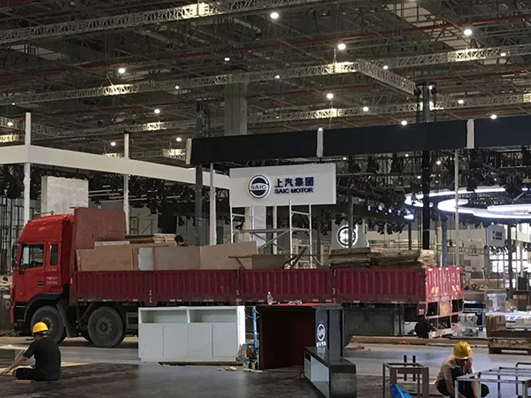工作人员正在紧张布置上汽集团展位。 中国国际工业博览会官网 图