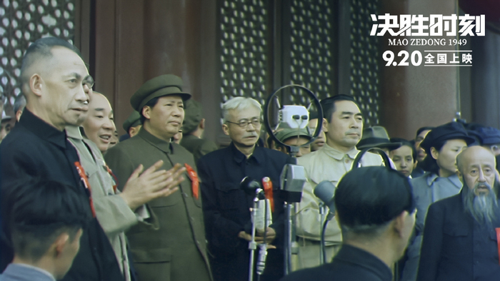然而这时片方突然搞了一波大操作,在16日发布了一组新剧照——开国大典历史影像经过修复后的彩色4K画面。这是开国大典历史影像资料第一次以彩色超清画质出现在大荧幕上。