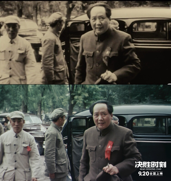 这个意外的惊喜,一开始还把不少观众和网友整懵了,从没想到还能在大荧幕上看到彩色超清版的共和国缔造者风采。