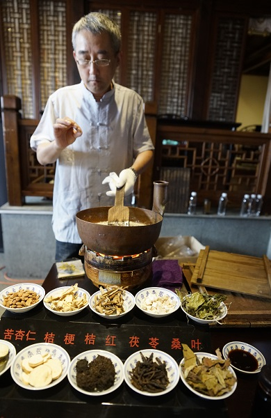 图说:非遗传承人现场熬制梨膏糖 采访对象供图