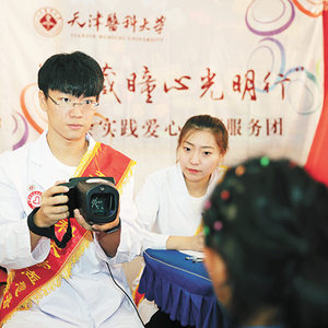 这也是张嘉懿志愿服务生涯的开端。2016年暑假,他跟随天津医科大学“津藏瞳心光明行”爱心医疗服务团赴西藏,为西藏地区近2000名4至18岁的农牧民青少年进行眼病筛查,填补了西藏地区儿童眼病基础性数据的空白。