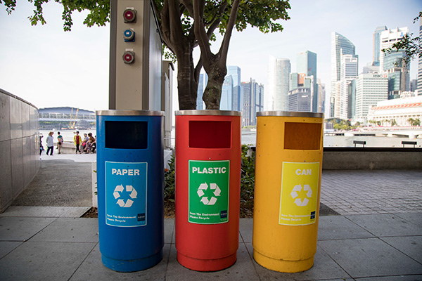 2019年4月8日,新加坡街头分类垃圾桶。 IC 资料图