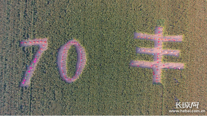 今年是中华人民共和国成立70周年,中国·阜城第二届农民丰收节暨红高粱文化节突出“物阜民丰,礼赞中华”的主题。高粱种植区专门收割出“70”、“丰”等巨幅字样,在航拍设备的画面中,显得尤为壮观。“当你看到一亩两亩,哪怕是十亩八亩的红高粱时,可能没什么感觉。但是当你从高处往下看到上千亩、几万亩、十万亩红高粱时,真的很震撼!那种丰收的、一眼望不到边的高粱红,瞬间令人感动得直想落泪……”摄影爱好者、游客张先生激动地说。