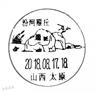 《汾河雁丘》风景日戳是太原市邮政分公司2018年8月17日,为配合《大雁》特种邮票首发而启用的,戳径30mm,由李国僮设计,主图为汾河风景区雁丘石及大雁为主图,线条简练,主题突出,布局合理,制作规范,美轮美奂,受到广大集邮爱好者的欢迎。