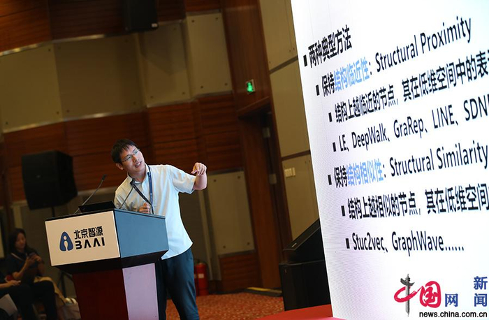 中科院计算所研究员沈华伟就图表示学习近年来的主要进展,包括无监督的网络嵌入和有监督的图神经网络等进行了介绍,并分享了其近期在网络表示学习和图卷积神经网络方面的一些研究工作。中国网记者 马旷/摄