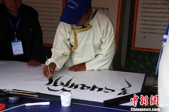 17日,西藏朗县第四届塔布文化旅游节暨第二届农牧民丰收节开幕。图为藏文书法展示。供图