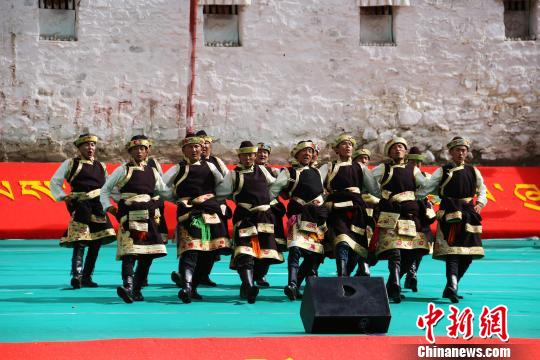 17日,西藏朗县第四届塔布文化旅游节暨第二届农牧民丰收节开幕。图为开幕式演出。供图