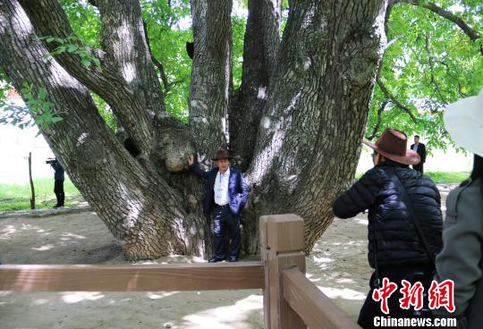 17日,西藏朗县第四届塔布文化旅游节暨第二届农牧民丰收节开幕。图为游客参观千年核桃林。供图