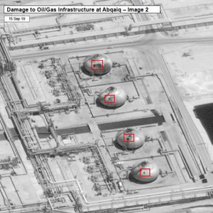 与此同时,国际社会甚至无法就此次事件作出一致解读。有些消息人士认为是胡塞武装导演了此次事件,并声称10架装有炸弹的无人机是从数千公里之外的也门飞往布盖格和胡赖斯。然而,还有些消息人士坚持认为此次袭击是不明身份者从伊拉克境内发射巡航导弹造成的。
