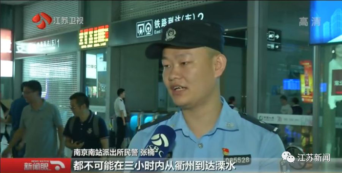 南京南站派出所民警张楠告诉记者:“他两张车票的发车时间相差不到三个小时,除了高铁以外的任何交通方式,都不可能在三小时内从衢州到达溧水。”也就是说,张某实际乘坐的就是从江西上饶开往南京南站的G2336次列车。