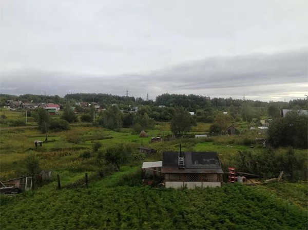 车站与车站之间充满了广阔的草原,茂密的白桦林,和数不清的湖泊与河流,偶尔还点缀着冒着炊烟的农屋和绿油油的田地。窗外的景色沿着铁路一路变化,好似驱车进入一个巨大的野生公园。