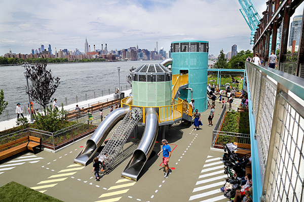 2012年,纽约布鲁克林区东河岸边多米诺糖厂完成改造后,原来的工业厂房空间变成了公园、体育场、娱乐与聚会等场所。河岸线成为适宜慢行的步道,人们在此漫步并观赏对岸曼哈顿壮丽的天际线。