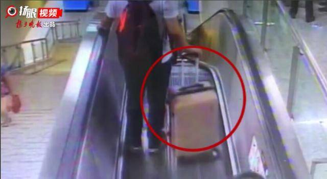 一个手滑,手扶电梯上行李箱又伤人