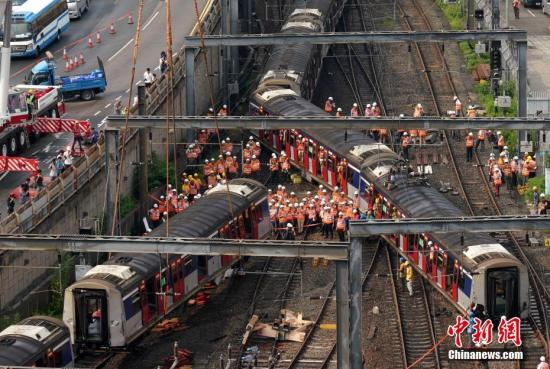 资料图:9月17日上午8时许,一列由旺角东站开往红磡站的列车驶近红磡站时车厢出轨,其中有3节车厢出轨。事故共造成8人受伤,其中5人送院治理。中新社记者 张炜 摄