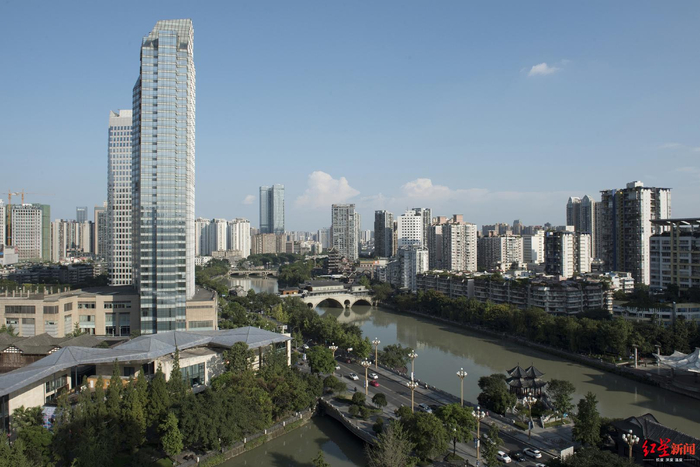 2018年8月,天气不错,严永聪又一次来到滨江东路与天仙桥南街口一栋商务楼上,看到了此处的巨大变化,拍下了照片。“两岸高楼如雨后春笋般的崛起,图片左边是2007年竣工的香格里拉大酒店,是成都的标志性建筑,河边蓝桂坊酒吧一条街,入夜这里灯火辉煌,古色古香的廊桥横跨锦江南北,形成了一幅美丽的画卷。”
