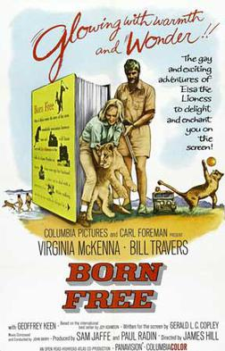 在这一思想的基础上,成为当今动物保护主义核心思想的“兽权”(动物权利)观念也出现了。反映在电影上,就是曾经获得金球奖最佳戏剧类影片提名的英国电影《天生自由》(Born Free,1966年)。这部电影的主角也是一只狮子,也就是进入过语文课本的母狮“爱尔莎”。奥地利女作家乔伊·亚当逊收养了失去母亲的野狮爱尔莎,并帮助其重回自然。乔伊根据自己与爱尔莎相处的经历,写了一本名为《天生自由》的书,一时轰动了世界,被誉为“二十世纪最杰出的动物文学”。它在著名的《纽约时报》畅销书排行榜上停留近一年之久。电影便是根据同名原著改编而成的。