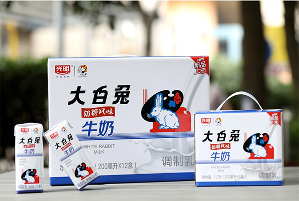 光明乳业与大白兔“跨界合作”,联合推出的大白兔风味牛奶。