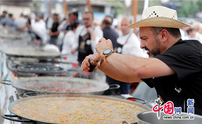 西班牙庆祝“世界海鲜饭日” 厨师脑洞大开在海鲜饭上“作画”