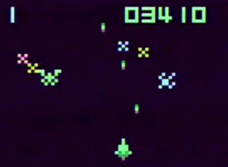 “Super Cassette Vision Jr”的画面即便如何夸赞也称不上精湛,这并非是我以当前技术水平为标准对该游戏的评价,而是我当时的真切感受。提到1983年,很多人都会想到那一年街机游戏已经出现了《太空战机》(ゼビウス,南梦宫,1983年)。那时,我就已经知道游戏厅摆放着很多画面精良的游戏。如果用“工笔画”来形容那些游戏的话,那“Super Cassette Vision Jr”只能算是“写意画”了。当时,我根本无从知晓两者差距如此之大的原因,现在对比一下二者的数据,我便恍然大悟。Famicom的分辨率为256*240,而“Super Cassette Vision Jr”的分辨率仅为62*54。