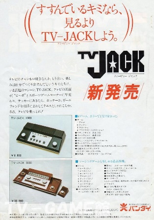 如上所述,“电视游戏机”会让小学生感受到另外一种快乐,即自己操纵电视机这一“电视节目接收器”。现在回想起来,并非只有我自己这样觉得。不仅如此,这也是厂商特意设计的卖点。万代(バンダイ)自1977年以后推出的“TV-JACK”游戏机系列恰恰能够证明这一观点。该款游戏机的电视广告由日本著名艺人森田一义出演,并打出了“争夺电视”的标语。除此之外,在广告的背面也写着一些广告词,例如“如果你一往无前,就放弃看电视、选择TV-JACK吧!”“争夺电视频道已经毫无意义了。如果你想要自己创造快乐,选择TV-JACK!争夺电视吧!”(注3)