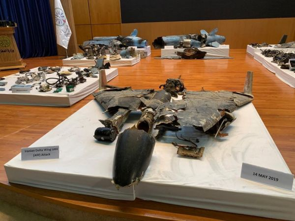 资料图片:沙特军方展出的袭击石油设施无人机残骸。(沙特国防部网站)