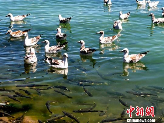 图为青海湖鱼鸟共生的和谐画面。 李隽 摄
