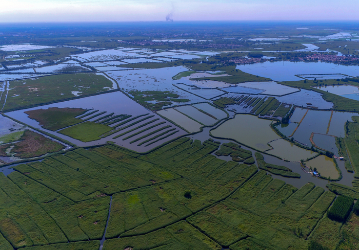 2018年,雄安新区清理白洋淀围堤围埝及沟壕水产养殖741处,养殖面积9.1万亩;排查、整治河道、淀区两公里范围内入河入淀排污(排放)口11395个。