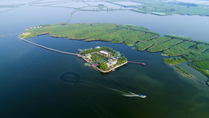 走上白洋淀新安北堤木栈道,碧水红荷,仿若置身江南。这里,被誉为“华北明珠”。