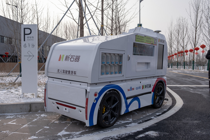↑无人驾驶售货车亮相雄安新区市民服务中心 图据VCG