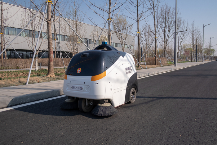 ↑雄安新区市民服务中心内的扫地机器人 图据VCG