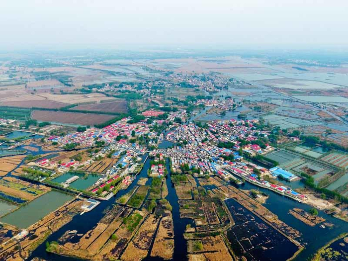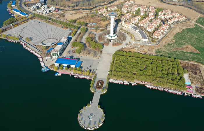 ↑雄安新区雄县,摄影师用无人机航拍的雄县白洋淀景区码头。图据VCG