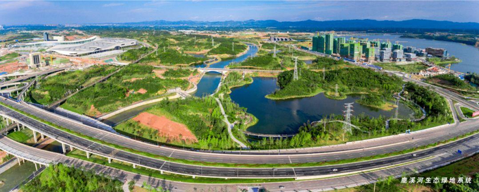 ↑鹿溪河生态区总面积4500亩,位于成都天府新区