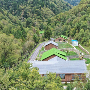 距离甲勿海下方一公里处,树木掩映的峡谷里,五栋房子依次排开,三栋绿色屋顶的房子尤为醒目,这是全新打造的生态、温馨的大熊猫“民宿”。