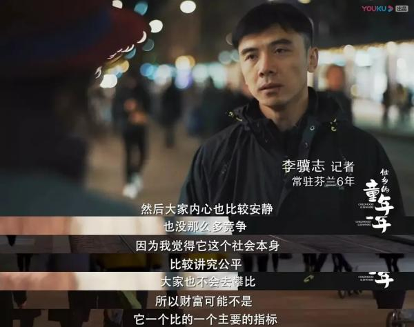 因为是高福利国家,各行各业收入差距不大,芬兰的贫富差距很小,整个社会最重视的,就是平等。9岁的孩子告诉周轶君,“有一份工作,一个妻子,有点钱儿”就是成功,“没有人是最好的”。
