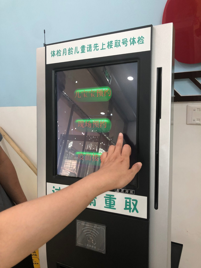 上午10点16分,许女士来到保健科大厅,在自助取号机上取了一张“儿宝宝预约”的专属号。“上周刚在妈妈群里知道的小程序,发现可以预约疫苗接种时段,就试着用一次。”许女士的孩子刚满两个月,上次来打疫苗时,现场取号排队,等了半个多小时,“大厅地方很有限,孩子又小,就怕人多的时候交叉感染生病。”
