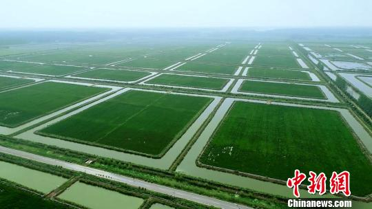 睢宁魏集湖畔槐园稻蟹养殖示范田鸟瞰。睢宁县委宣传部 供图