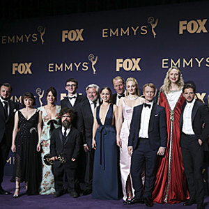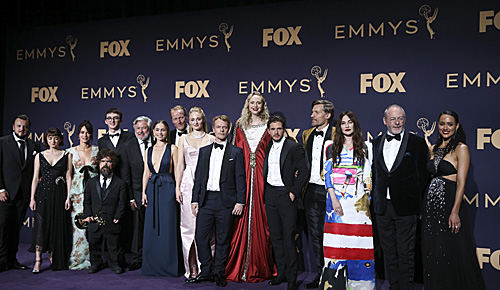 9月22日,在美国洛杉矶,《权力的游戏》主创人员在颁奖典礼上合影。(新华社)