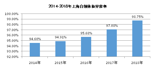 图说:2014-2018年上海白领体检异常率。上海外服供图(下同)