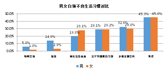 图说:男女白领不良生活习惯对比。