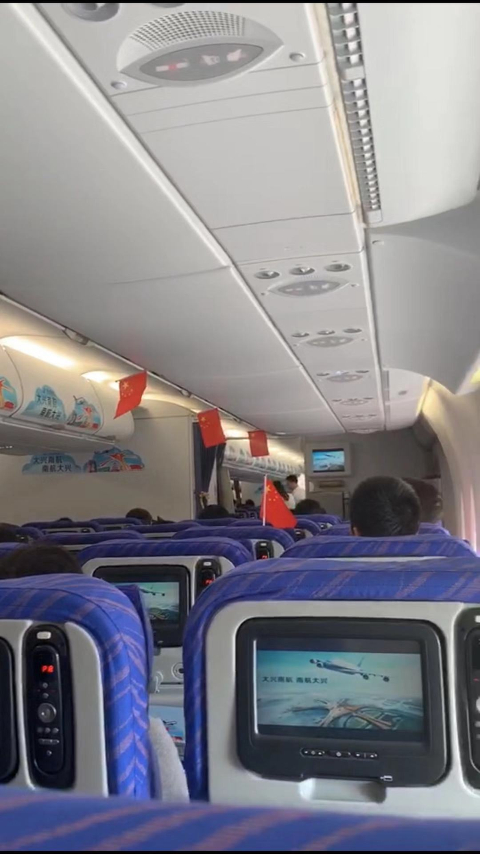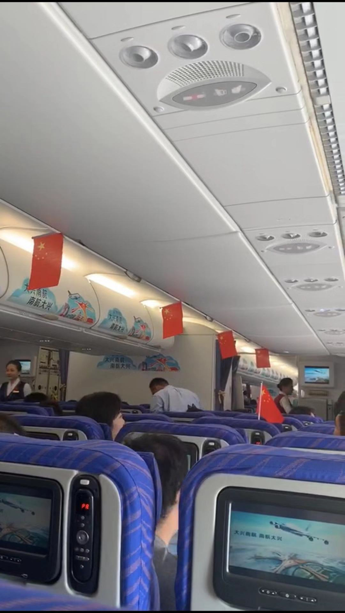 下午四点刚过,客舱里响起机长广播:“这里是大兴机场第一个商业载客航班。我已安全飞行19000多小时,但这次是我最难忘的旅行!大兴新机场饱含了一代民航人的热情和梦想,祝愿大兴机场和南航发展得越来越美好!”