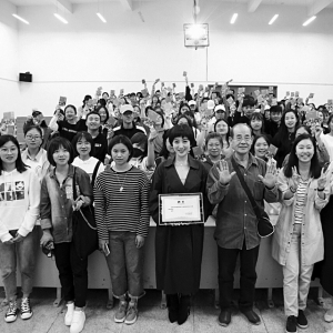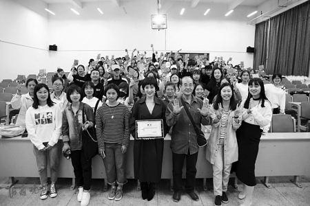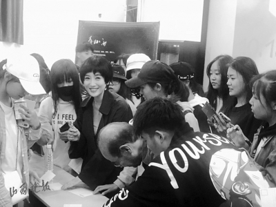 临近结束,现场大学生们纷纷从座位上站起来,跑向舞台最前排,伸长胳膊索要签名,场面热烈。最后,全体学生手拿签名明信片,与电影主创合影并预祝“票房大卖”。
