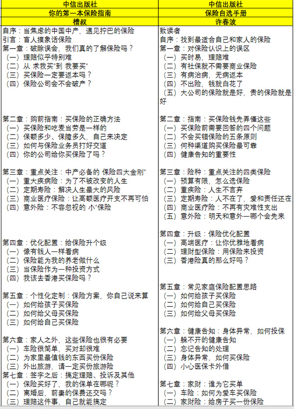 同由中信出版社出版的两本保险相关书籍,当中一本被指抄袭另一本。